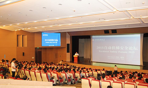 2015年8月27日,由中國電梯協(xié)會(huì )舉辦的首屆自動(dòng)扶梯安全論壇在廊坊阿爾卡迪亞酒店成功舉辦。本次會(huì )議得到了社會(huì )各界廣泛關(guān)注和支持,包括廊坊市委常委、副市長(cháng)喻華峰、中國電梯協(xié)會(huì )理事長(cháng)李守林、國內外專(zhuān)家、企業(yè)代表、用戶(hù)代表及行業(yè)中立組織共300余人參加會(huì )議。
